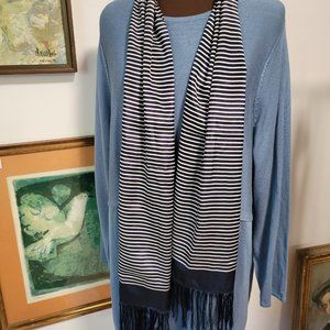 Versatile Rectangular Blue and White 100% Silk Scarf