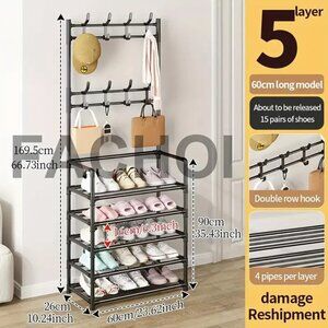 Versatile Shoe & Coat Metal Rack Detachable Hooks Multi-Layer Free-Standing