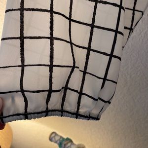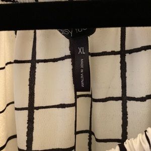 Black and white dress shirt, perfect under a blazer or Jean jacket. Light weight