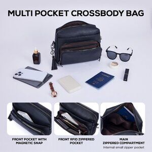 Versatile Vegan Leather Crossbody Bag: RFID Protection, 4 Pockets, Adjustable