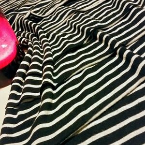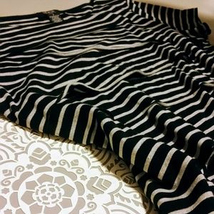 SOLD**This is a gently worn, short sleeved top by Verve in size Large . Features super flattering scoop neck and layered flat ruffles Navy blue with dove gray stripes. Cotton-blend blend retails for $39. Generously priced at only $16. Thank you for viewing my listing.