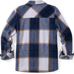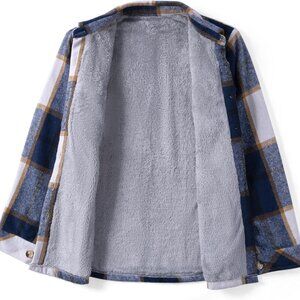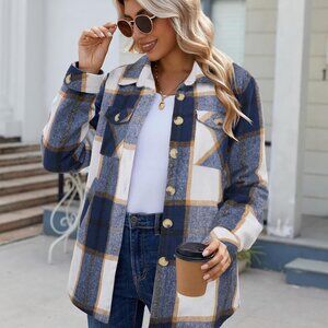 Features: This jacket features a classic plaid design in a flattering navy color, with a fully fleece sherpa lining that keeps you cozy and warm without the bulk. It has both side and breast pockets—perfect for keeping your hands warm or carrying small essentials. The lightweight material makes it easy to layer over tees, sweaters, or long sleeves.