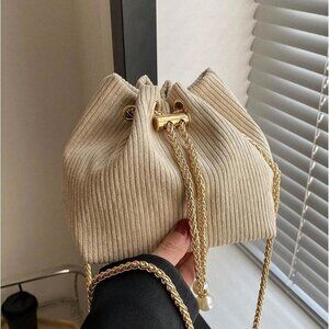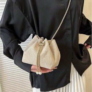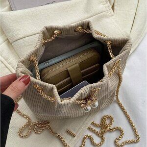 Features: Compact mini crossbody with a stylish chain strap, drawstring closure, and lightweight feel. Great for hands-free convenience and adding a chic element to your outfit.