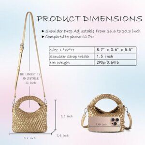 Features: Stylish woven design made from vegan faux leather with a sturdy, thick shoulder strap for all-day comfort. Compact yet spacious enough to hold your essentials like phone, wallet, keys, and more. Great for casual outings, errands, or a quick coffee date.