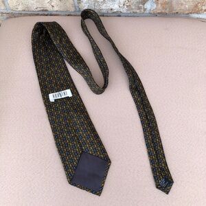 Versini 💯 % Silk Made in Korea Yellow Blue Geometric Pattern Neck Tie