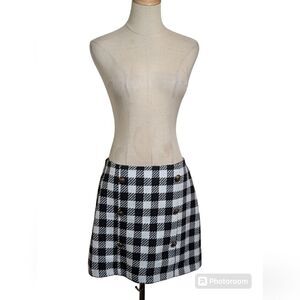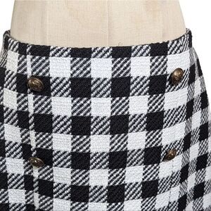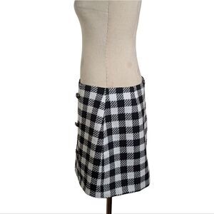 Best part of the skirt is the gold buttons on front. Fully lined wool blend skirt with zip back Not much stretch