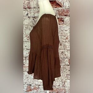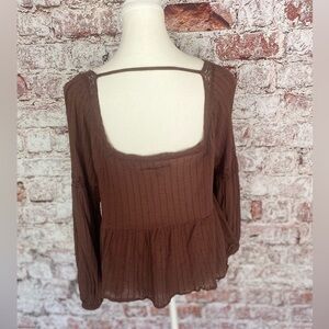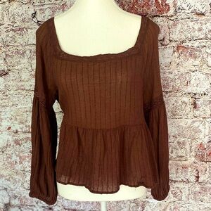 Versona Boho Brown Peplum Top | Square Neck & Low Back- Long Sleeve| Size L
