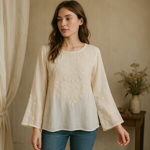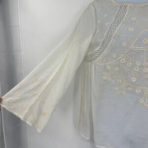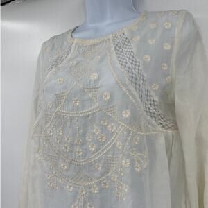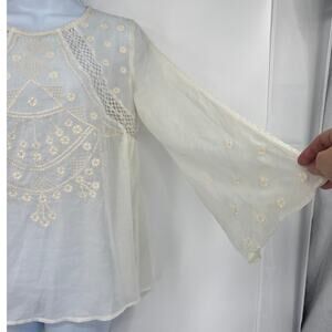 Cream Versona Embroidered Peasant Blouse Boho Lace Sheer Bell Sleeve