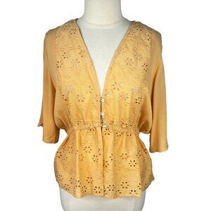 Versona Embroidered Button Front Top Womens Medium Yellow