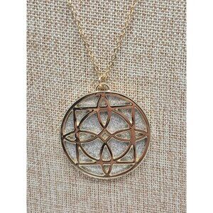 Versona Gold Tone Long Link Chain Round Two Tone Pendant Necklace 34"
