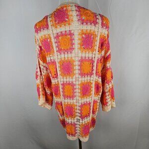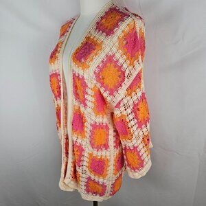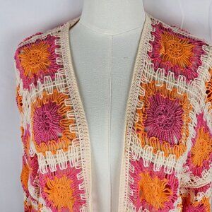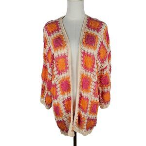 Versona Lakeline Crochet Granny Square Cardigan One Size Orange Pink Boho