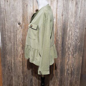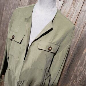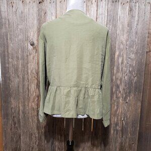 Versona M Jacket Blazer Green Peplum Ruffle Open Front Women's Career Office