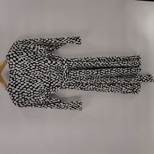 Versona Pullover Dress Size Small Faux Wrap Black and White Elbow Sleeve Stretch