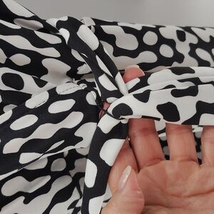 Versona Pullover Dress Size Small Faux Wrap Black and White Elbow Sleeve Stretch