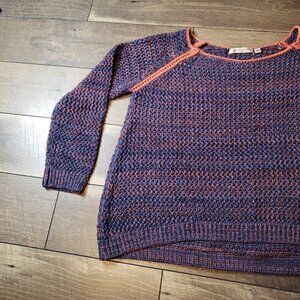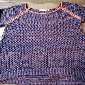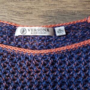 Versona Sweater Loose Knit Pullover - 100% Acrylic loose fit, boatneck pullover is perfect to layer over a cami/tank top. Pretty Blue with Neon Orange accent trim. Size XL Measurements taken with the garment laying flat. 22" across the chest / 21" in length
