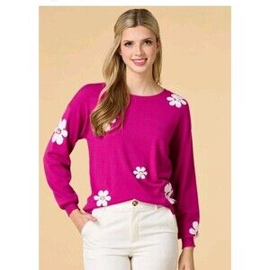 Versona Sweater Pink White Daisy Lightweight Barbiecore Feminine Womens Medium