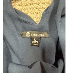 Versona Tank Top Womens Large Navy V-Neck Strappy Back Sleeveless Gauze Blouse