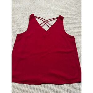 Versona Tank Top Womens Large Red V-Neck Strappy Back Sleeveless Gauze Blouse