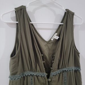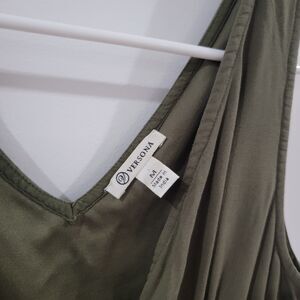 The Versona Women's Maxi Dress in size medium features a tiered design, perfect for those embracing the forest fairy or goblincore styles. The sleeveless dress with a V-neck and button closure is ideal for casual or travel occasions, with its green color and peasant, bohemian theme. Made from a blend of polyester and rayon, this long dress with layered accents is a stylish choice for the warmer seasons of summer, fall, and spring.