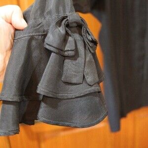 amazing shirt with gold button at Collar and the best ruffled, with bows bell sleeves I have ever seen. its everything you could want in a black button up shirt.