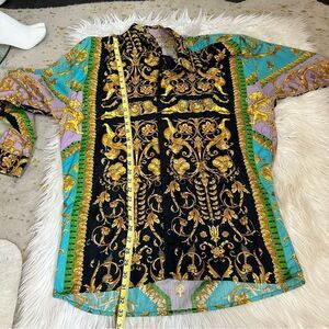 Versus Gianni Versace Vintage Lion Logo Mixed Print Long Sleeve Shirt Size 50 US large