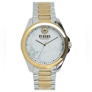 Stylish Versus Versace watch with a striking gold and silver finish. Perfect for adding elegance to any look. Versus Versace Colonne Bracelet Watch Water Resistant 50m Silver/gold needs new battery