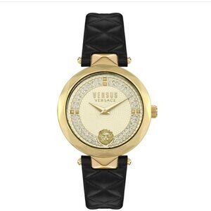 Versus Versace Womens Watch Covent Garden Goldtone Crystal & Leather Strap New