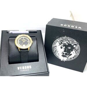 Versus by Versace Women's Watch VSPLM2521 Black Dial Gold Case Leather Band 40mm