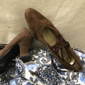 Vertan Italy Brown Suede Heels with Elastic Straps is a closed toe shoe with