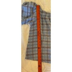 Verte Blouse Size Large Top Off Shoulder (or on) Baby Blue Plaid w Pink Cropped