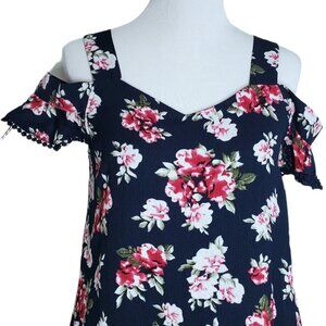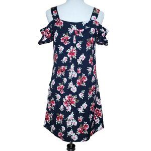 Verti Womens Shift Dress Size Small V-Neck Cold Shoulder Floral Ruffle Sleeves
