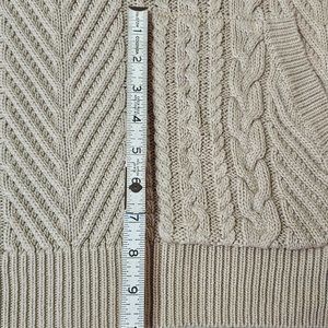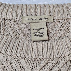 Vertical Design Camel Cream Eggshell Cable Knit Sweater w/ Front Pockets EUC! XL