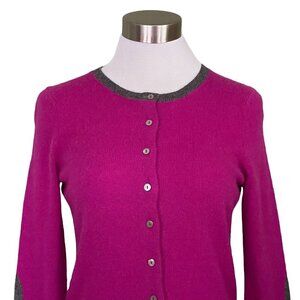 Vertical Design Womens S 100% Cashmere Cardigan Magenta Gray Elbow Patch Sweater