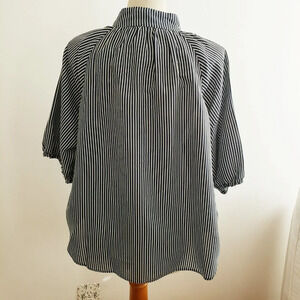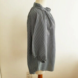 °Vertical Striped Navy Blue and Cream Tunic Blouse / Est. Size Large