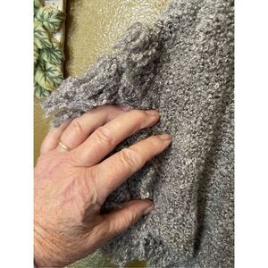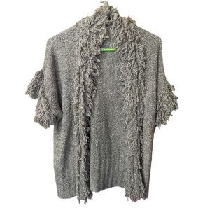 Vertical design size M boho festival fringe open cardigan. Short sleeves are fringe trims as well as around neck to hem. Pit to pit 24.5” and length 25.5”. Taupe in color.