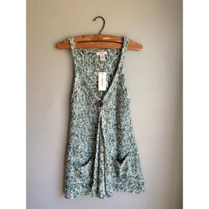 Vertigo Knitted Racerback Cardigan Tank Top Button Front Aqua Combo Size Medium