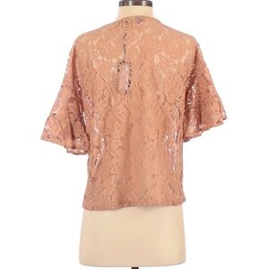 Vertigo | Lace 3/4 Sleeve Top New With Tags NWT Peach Pastel Short Sleeve XS Ruffle Neutral Lace