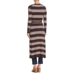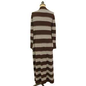 Vertigo Longline Duster Cardigan Sweater L Striped Black/Coffee/Vanilla NWD B89