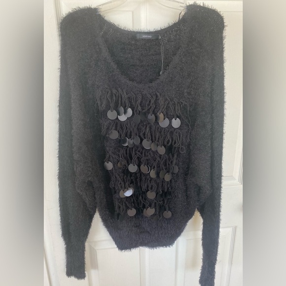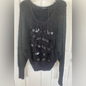 Vertigo NWT Black Fuzzy Sweater with Sequin Details