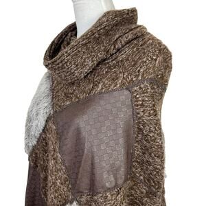 Vertigo NWT S/M Brown Chunky Knit Patchwork Fringe Pullover Poncho Sweater
