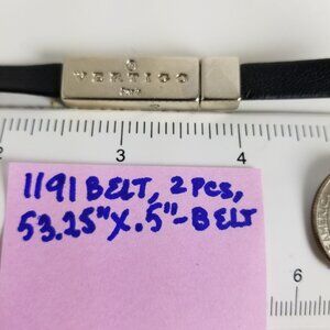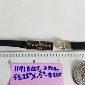 Vertigo Paris 2 pcs Accessories Set: 53.25" Long by 0.5" Wide Skinny Black Vegan Leather Belt & Stainless Steel Vertigo Paris Logo Functional Buckle attached to a Skinny Black Vegan Leather. No imperfecions noticed.