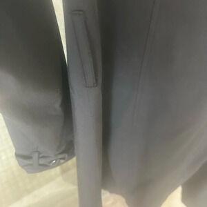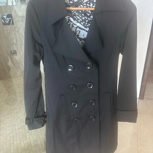 Elegant black coat. Double-breasted design. Perfect for any occasion.