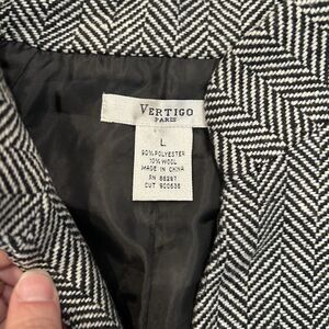 Vertigo Paris Black Tweed Herringbone Wool Blend Jacket Size Large Puff Sleeve