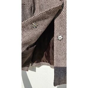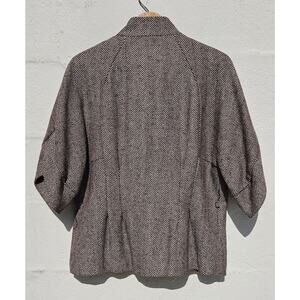 Vertigo Paris Blazer Womens XL Brown Ivory Herringbone Wool Blend Open Jacket