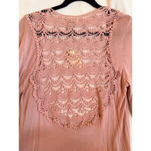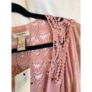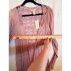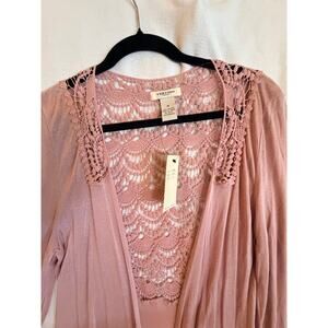 Vertigo Paris Blush Pink Lace Crochet Open Front Cardigan Duster Size M NWT $160