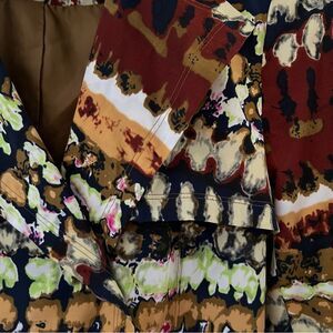 Elevate your wardrobe with this elegant and colorful Vertigo Paris Trench Rain Jacket with beautiful details. This mid-length jacket features an abstract pattern, long sleeves, and a double breast closure with a tie and button. The belted waist accentuates your curves while the polyester outer shell and lining material keeps you warm in fall and spring. So chic!