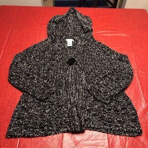 Vertigo Paris Hooded Cardigan. Black/white tweedy coloring. One button front closure. Long sleeve. 2 front pockets. EUC. Size medium. Measures chest 39”, length 19.5”, sleeve 18”.