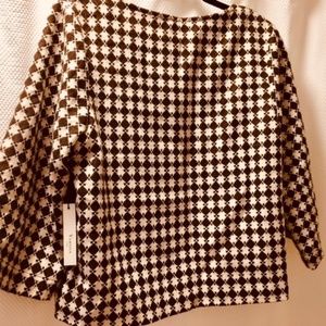 Cute and stylish NWT Vertigo Paris Jacket. Adorable white and chocolate brown houndstooth check. The sleeves are three quarter length, shoulder to bottom is about 22 inches, the sleeves are about 17.5 -18 " from shoulder. Wonderful green lining. Perfect for the fall season. Just add some classic earrings and your fabulous self!