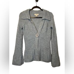 Vertigo Paris SZ Sm Aplaca Blend Bell Sleeve Sweater Light Blue Button Closure