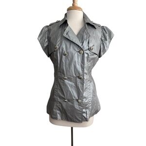 Vertigo Paris Silver Double-Breasted Cap Sleeves Top Size Large